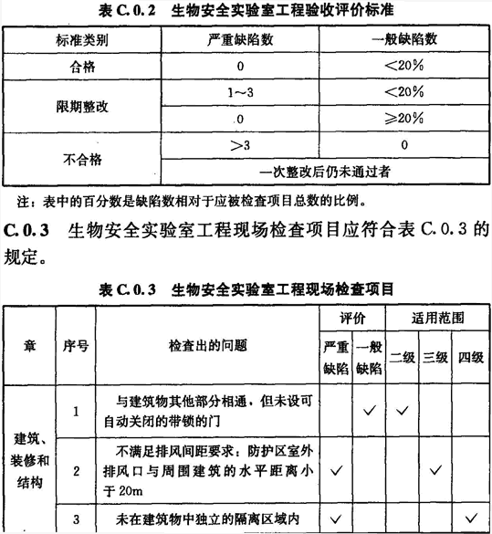C.0.2 生物安全實(shí)驗室工程驗收評價(jià)標準應符合表C.0.2的規定。