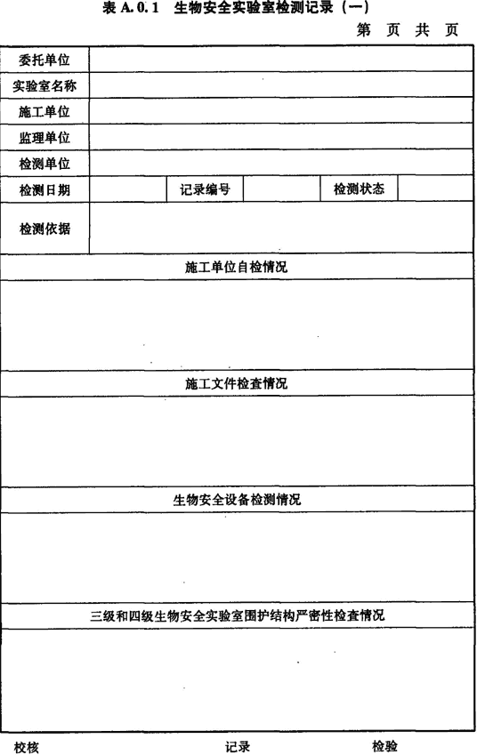 附錄A 生物安全實(shí)驗室檢測記錄用表