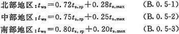 B.0.5 夏季空氣調節室外計算濕球溫度可按下列公式確定: