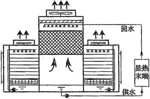 通常情況下,當室外空氣的露點(diǎn)溫度低于14℃~15℃時(shí),采用間接—直接蒸發(fā)冷卻方式,可以得到接近16℃的空調冷水作為空調系統的冷源。直接蒸發(fā)冷卻式系統包括水冷式蒸發(fā)冷卻、冷卻塔冷卻、蒸發(fā)式冷凝等。在西北部地區等于燥氣候區,可通過(guò)蒸發(fā)冷卻方式直接提供用于空調系統的冷水,減少人工制冷的能耗,符合條件的地區推薦優(yōu)先推廣采用。