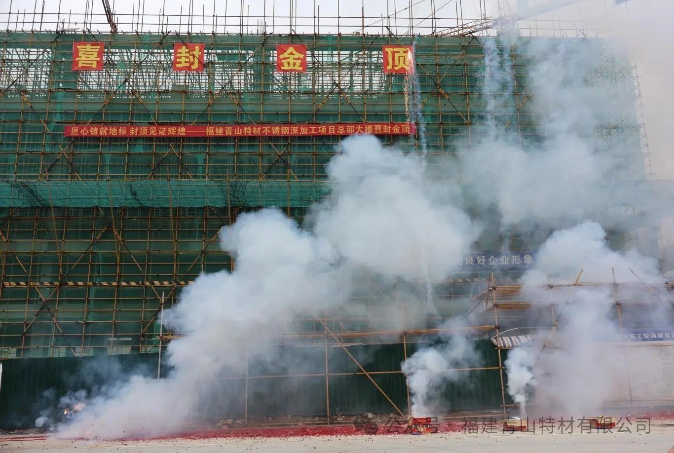 福建青山特材不銹鋼深加工項目總部大樓喜封金頂